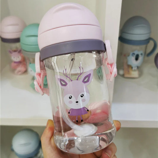 350 مللي أكواب شرب الطفل مانعة للتسرب الكرتون الاطفال كوب امتصاص الماء مع مقبض حزام الكتف الجاذبية الكرة القش الاطفال زجاجة ماء
